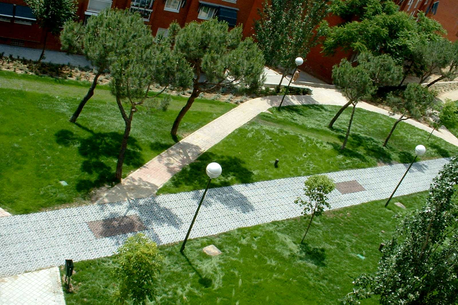 Trabajamos para reducir el grado de impermeabilización existente, cubriendo y/o sustituyendo las superficies actuales por otras nuevas permeables y biofílicas mediante técnicas de urbanismo de bajo impacto, infraestructuras verdes o SUDS (Sistemas Urbanos Drenaje Sostenible).
