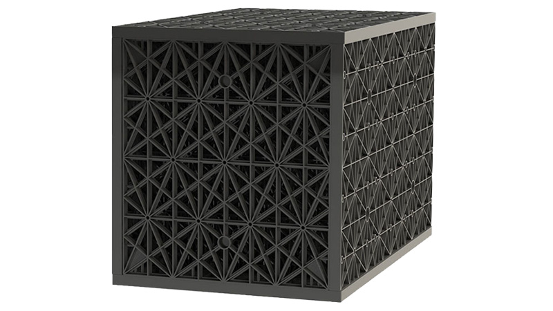 A pesar de su gran ligereza, posee una extraordinaria capacidad portante. Se instalan envueltas en geotextiles de alta calidad y se cubren luego con material granular, de modo que el sistema crea un espacio enterrado a través del cual el agua puede circular en cualquier dirección.